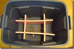 1. Make a criss-cross grid at the bottom of the bin. I guess you could make it neater than I did, but so could I if I didn’t have kids screaming in the background.