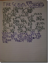 “THE SCHOOL: The Trouble” (by Naomi Rivka, age 6.5).